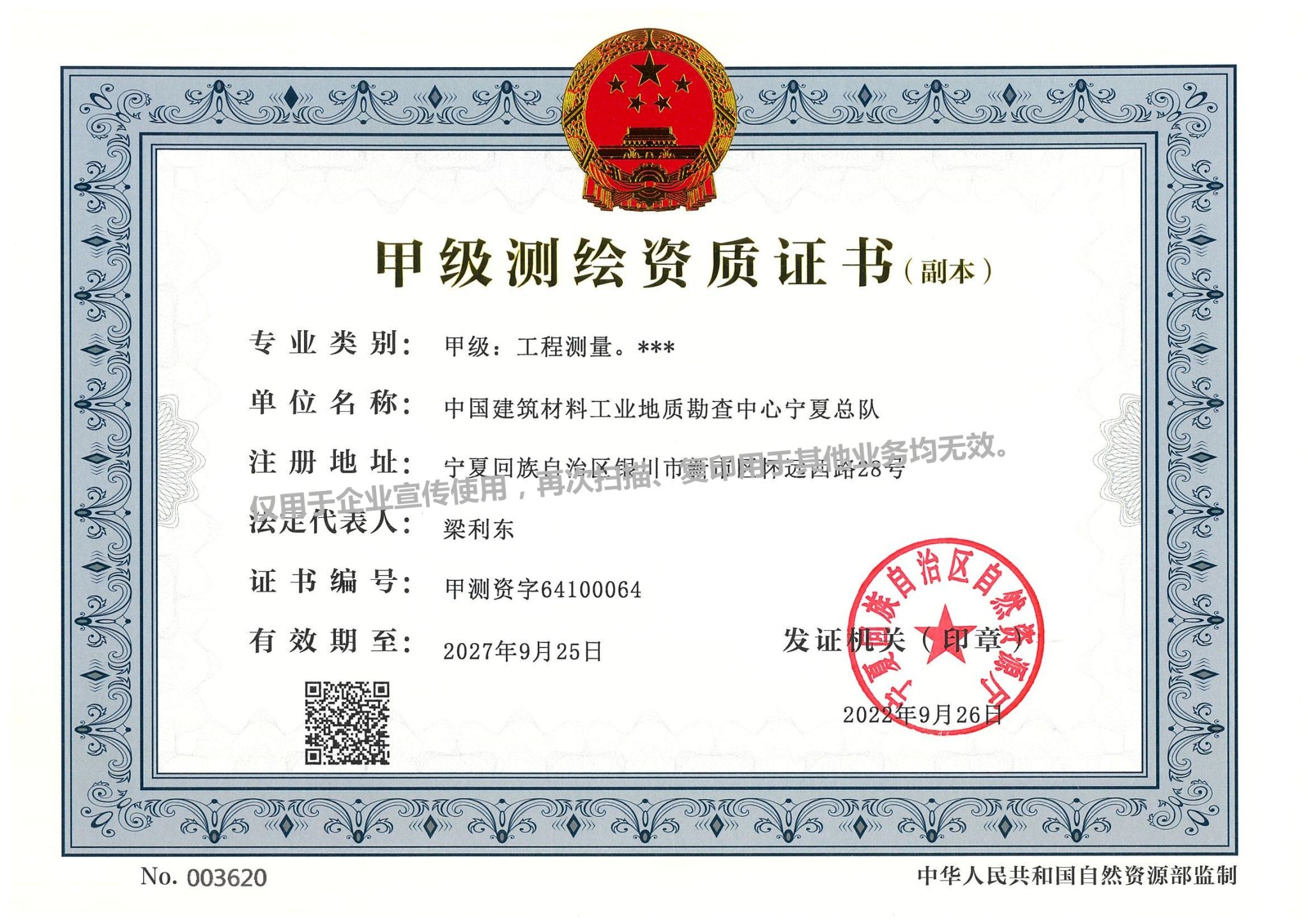 甲级测绘资质证书