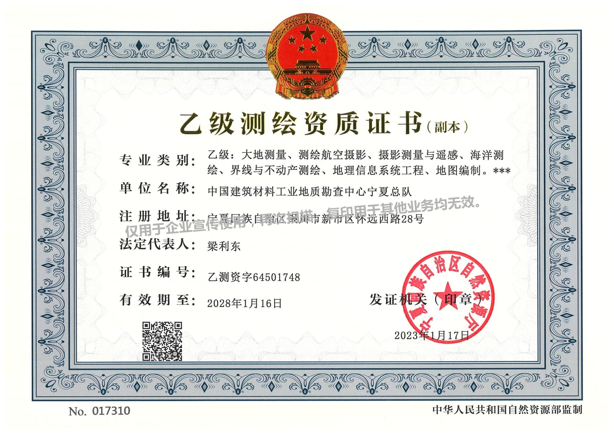 乙级测绘资质证书
