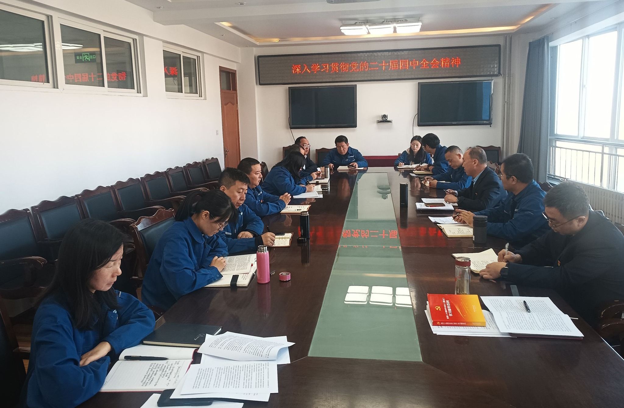 11月14日,宁夏总队党委理论学习中心组召开专题学习会,组织总队所属各公司、院、部门及各党支部负责人集中学习传达党的二十届四中全会精神。总队党委书记张滋荣主持会议并结合工作实践开展心得交流,总队班子成员结合“十五五”规划和分管领域交流学习体会、提出落实举措。